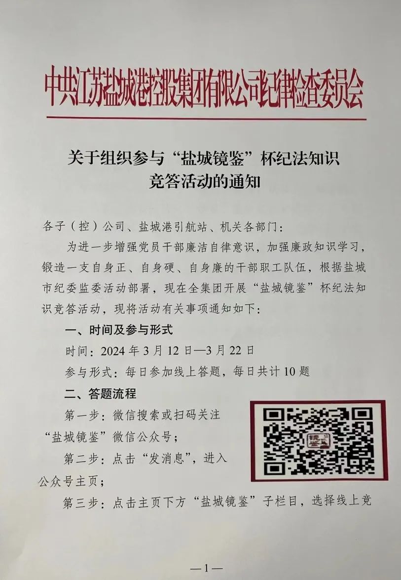 (組織開展“鹽城鏡鑒”杯紀(jì)法知識(shí)競(jìng)答活動(dòng))