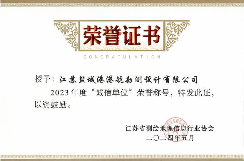 近日,江蘇省測繪地理信息學(xué)會(huì)公布2023年度“誠信單位”評(píng)定結(jié)果名單,江蘇鹽城港港航勘測設(shè)計(jì)有限公司被評(píng)為2023年度“誠信單位”,這一榮譽(yù)彰顯了業(yè)界對(duì)勘測設(shè)計(jì)公司經(jīng)營管理和信用體系建設(shè)等方面的認(rèn)可,更是對(duì)勘測設(shè)計(jì)公司在測繪地理信息領(lǐng)域誠信經(jīng)營、優(yōu)質(zhì)服務(wù)的肯定,對(duì)于助推市場經(jīng)營和品牌打造起到積極作用。