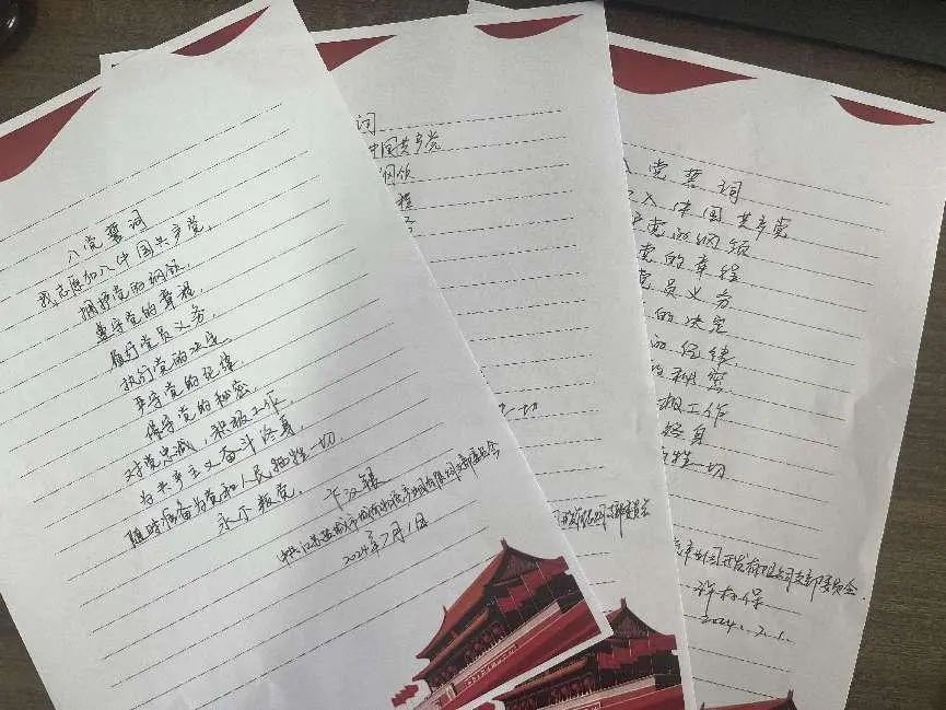 一筆一劃,書寫的是對(duì)黨的莊嚴(yán)承諾;一撇一捺,凝聚的是對(duì)黨的無(wú)限忠誠(chéng)。黨員們懷著崇敬的心情,手握鋼筆,認(rèn)真地抄寫著每一個(gè)字。每一個(gè)筆畫都充滿力量,每一句誓言都飽含深情。