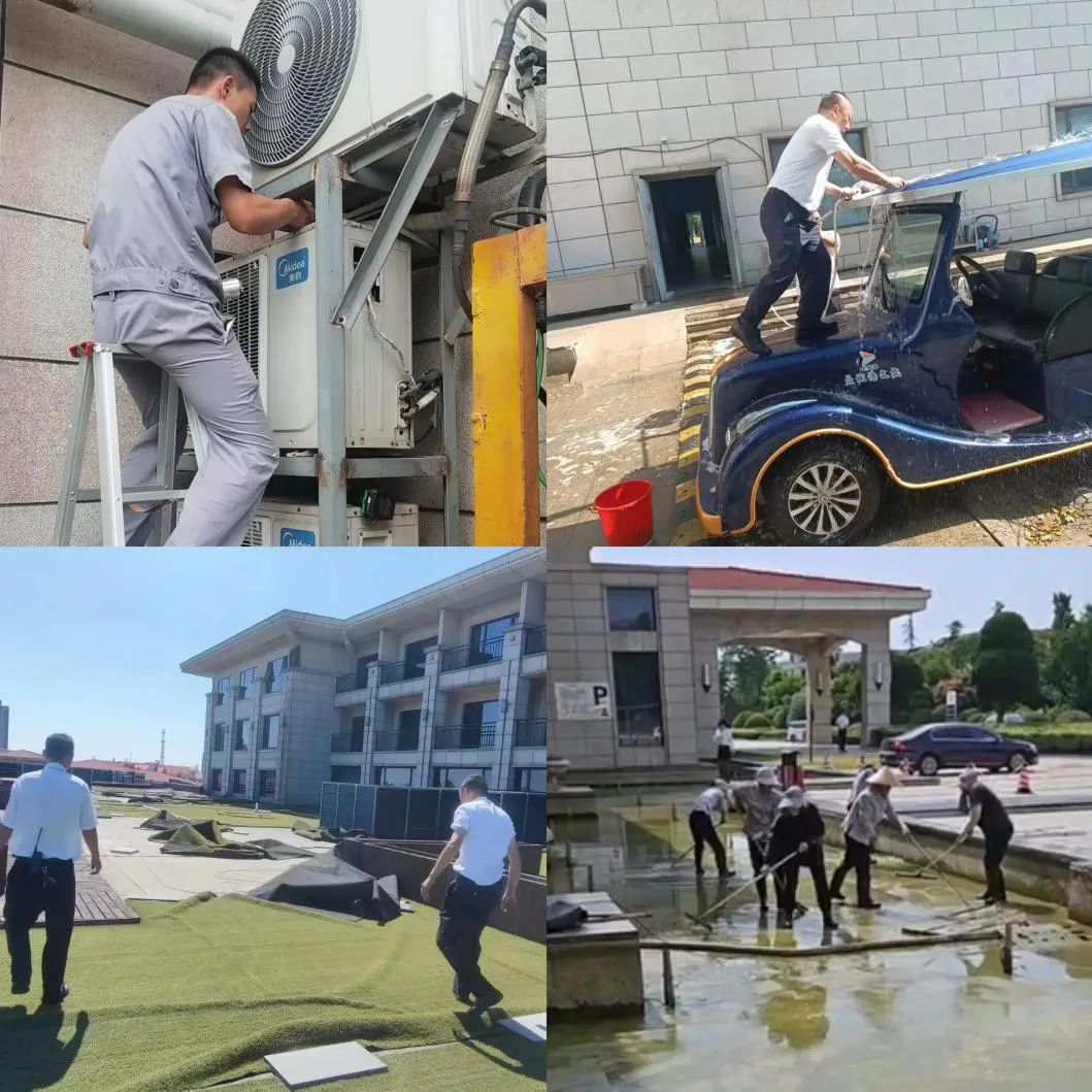高溫?fù)舨豢妍}城港人對(duì)事業(yè)的熱愛(ài)、對(duì)崗位的忠誠(chéng)。頂著烈日的忙碌身影,鋪被風(fēng)吹散的草坪、清理遍布綠色苔蘚的水池、清洗觀光車(chē)、維修設(shè)備.....,他們用強(qiáng)烈的責(zé)任心與可靠的專業(yè)技能,讓客戶用得放心。