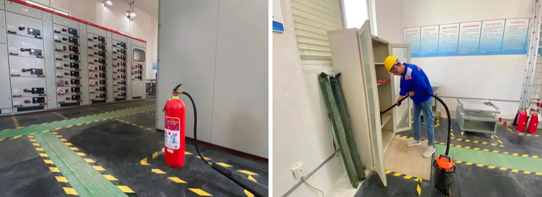 灌江港務(wù)分公司配電房現(xiàn)有絕緣墊即將到達更換期限,設(shè)備技術(shù)組摒棄傳統(tǒng)布局設(shè)置,結(jié)合碼頭實際,運用不同顏色進行區(qū)域劃分,重新規(guī)劃、擺放,清晰界定各功能區(qū)域,同時特別為配電房開辟了“安全通道”,以保障緊急情況下的快速疏散與救援。此外,設(shè)備技術(shù)組使用警示膠帶,明確劃分禁止觸碰區(qū)與應(yīng)急器械區(qū),有效地提高了工作場所的安全性,?減少因誤操作或不了解環(huán)境布局而導(dǎo)致的潛在風(fēng)險。