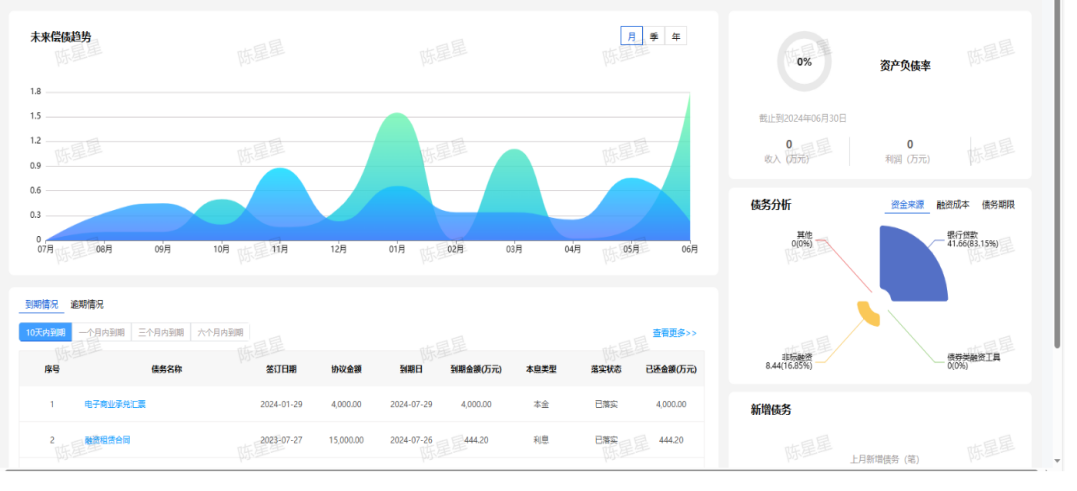 為實現財務標準化,每一筆融資發(fā)生后,第一時間將貸款的所有數據更新至系統,實現每一筆還款無遺漏,保證資金還款的安全性。同時,系統可生成債務結構,通過直觀的餅狀圖顯示,了解港區(qū)的債務情況,及時作出合理提款計劃,調優(yōu)融資結構。