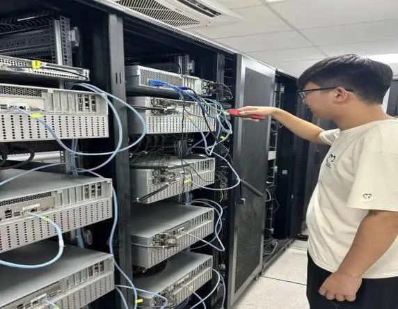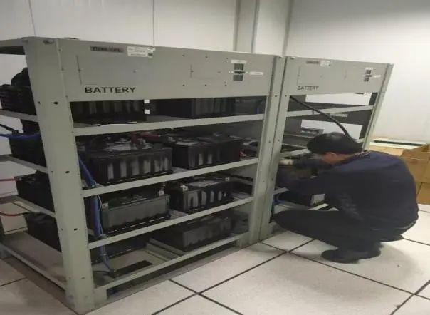 項(xiàng)目人員在物聯(lián)大廈機(jī)房UPS不間斷電源更換