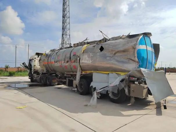在接到大豐區(qū)交通運輸部門指令,危化品運輸公司緊急啟動應(yīng)急預(yù)案,立即組織救援搶險隊,調(diào)集油罐車輛趕赴現(xiàn)場,協(xié)同臨時應(yīng)急救援領(lǐng)導(dǎo)小組制定救援方案,并實施救援。