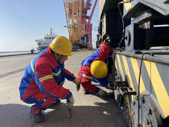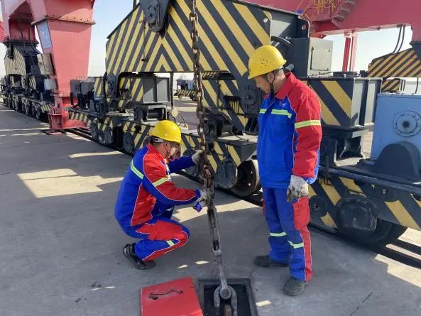 為確保設備防寒工作得到有效落實,射陽港區堅持問題導向,明確責任分工,加大檢查監督力度,開展安全警示教育及作業標準方面的專題培訓,引導干部職工深入識別和分析各類安全風險,堅持“邊檢查、邊整改、邊提升”的原則,重點關注門機、場地機械等關鍵設備,加強數據監測、設備基礎檢查力度,準確掌握設備變化情況,打好設備防寒“組合拳”。