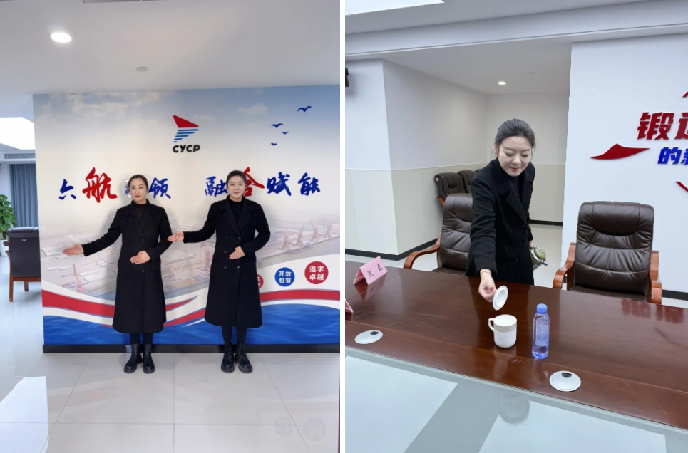 培訓導師從理論學習、操作技能和禮儀形體培訓三部分,進一步幫助會務組了解和掌握服務禮儀知識及行為規范、熟知待客接物的技巧和方法,不斷提高會務服務質量。實操中,會務組將服務意識內植于心、外化于心,認真做到站相迎、禮貌問、雙手接、快準辦、交接清、微笑送,用心詮釋會務人員職業素養,為港區會議提供高水平的后勤服務。