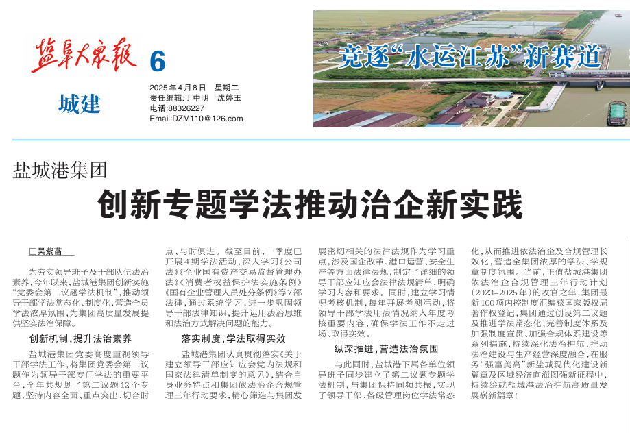 為夯實領(lǐng)導(dǎo)班子及干部隊伍法治素養(yǎng),今年以來,鹽城港集團創(chuàng)新實施“黨委會第二議題學(xué)法機制”,推動領(lǐng)導(dǎo)干部學(xué)法常態(tài)化、制度化,營造全員學(xué)法濃厚氛圍,為集團高質(zhì)量發(fā)展提供堅實法治保障。