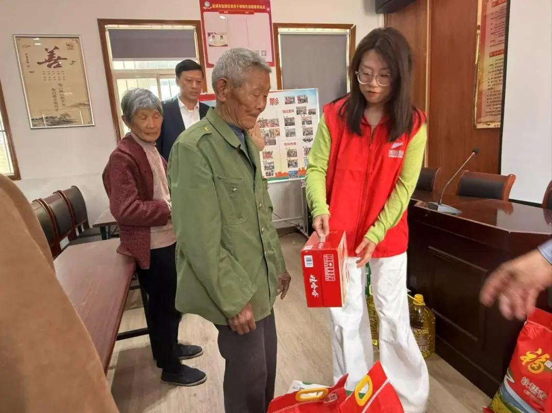 當員工們將大米、食用油、牛奶、保暖用品等生活物資逐一遞到老人手中時,現(xiàn)場響起了陣陣掌聲。