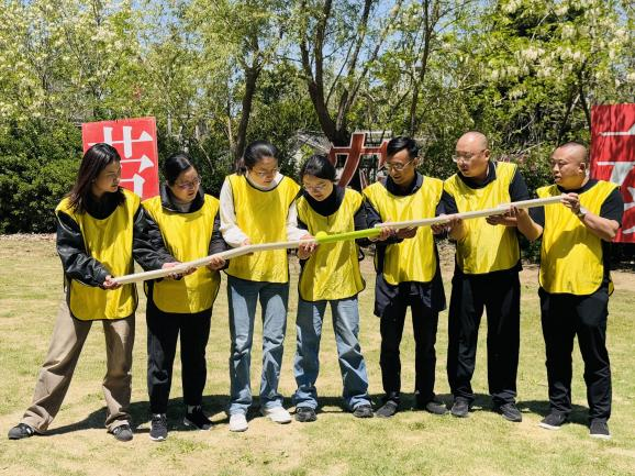 在戶外團隊協作環節,青年職工們分組參與“珠行萬里”“步步高升”等趣味活動,在互幫互助中深化友誼,在默契配合中增強團隊凝聚力?;顒蝇F場,加油聲、歡笑聲此起彼伏,展現出新時代青年昂揚向上的精神風貌。
