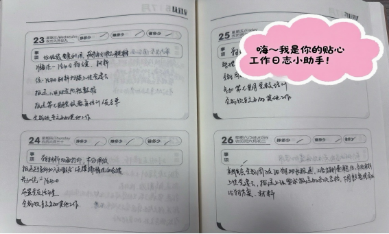 我是那本寫(xiě)得滿(mǎn)滿(mǎn)當(dāng)當(dāng)?shù)墓ぷ魅罩尽D惴催^(guò)同事的本子,或許只看到工整的字跡,記著“上午核對(duì)資料”“下午對(duì)接碼頭”,但我每一頁(yè)的記錄都是實(shí)用的“工作指南”。大家總愛(ài)翻閱我的舊頁(yè),依照去年記下的經(jīng)驗(yàn)要點(diǎn),提前做好相關(guān)臺(tái)賬梳理和工作籌備。這些藏在字縫里的經(jīng)驗(yàn),可比空喊“提效率”要實(shí)在得多。