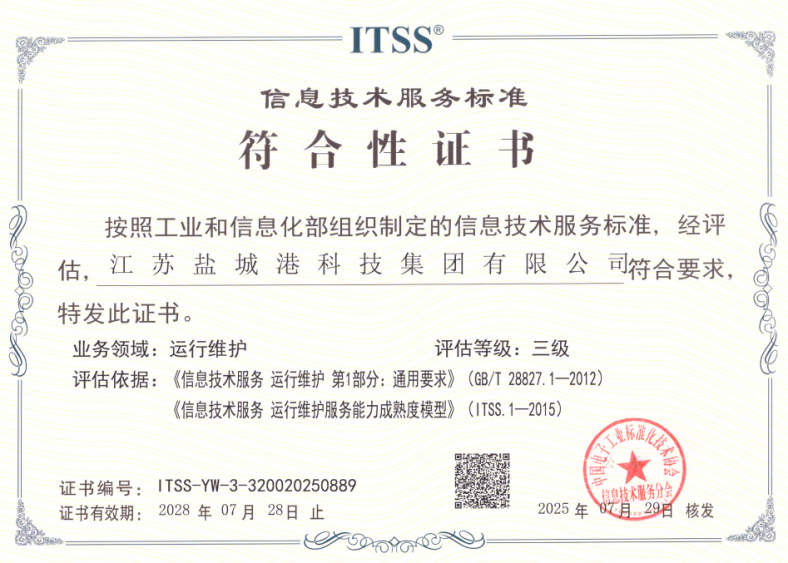 近日,科技集團順利通過國家信息技術服務標準(ITSS)三級認證,這一成果的取得是對公司技術實力、服務流程及管理規范的高度認可,標志著科技集團在信息技術服務領域發展邁上新臺階。