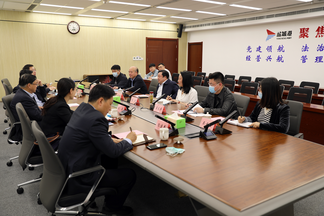 周正雄對顧明一行的到訪表示歡迎,對中國農業銀行在鹽城港集團發展過程中給予的關心和支持表示感謝,并介紹了鹽城港集團相關發展情況。他說,在市委、市政府的堅強領導下,集團于2020年6月16日成功組建,“握指成拳”形成全市海上航線、內河航線與海港碼頭、內河碼頭一體化運營發展新格局,全面提升了鹽城對外開放水平和城市發展能級。近年來,集團一手抓改革、一手抓發展,先后開展“六清”“六降”等工作,通過注銷、合并等手段推進低效、無效資產處置,資產資源結構得到了進一步優化。在此基礎上,集團統籌推進海港、內河港口、集裝箱業務發展,新開辟了15條航線,港口營收能力得到持續提升,并在2021年首次躋身全國億噸大港行列。