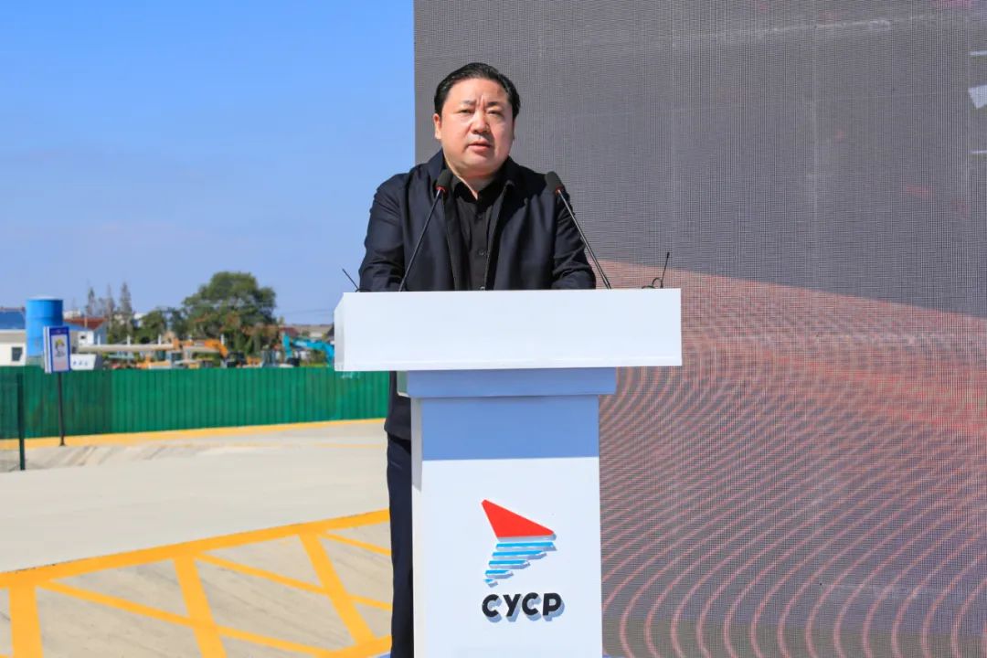 周正雄在致辭中代表集團(tuán)黨委、董事會對活動的順利舉行表示祝賀。他說,在全國上下喜迎黨的二十大勝利召開之際,舉行鹽城港集團(tuán)與南京港集團(tuán)、江蘇遠(yuǎn)洋公司簽約暨鹽城港至南京龍?zhí)陡酆骄€開航儀式,是繼去年9月28日鹽城港與省港口集團(tuán)簽約并開通對韓直達(dá)航線以來的又一重要時(shí)刻,標(biāo)志著鹽城港與省港各兄弟單位之間關(guān)系更緊、合作更密、友誼更深,將進(jìn)一步助推鹽城港在勇當(dāng)沿海地區(qū)高質(zhì)量發(fā)展排頭兵進(jìn)程中勇立潮頭、奮楫爭先。今天,鹽城港再次與業(yè)內(nèi)知名、省內(nèi)重要的港航企業(yè)南京港集團(tuán)、江蘇遠(yuǎn)洋公司攜手合作,正式開通至南京龍?zhí)陡奂b箱航線,這是認(rèn)真落實(shí)省、市委關(guān)于深入推進(jìn)沿海發(fā)展決策部署的一項(xiàng)有效舉措,將有力助推我省港口物流業(yè)實(shí)現(xiàn)南北聯(lián)動、資源共享、優(yōu)勢互補(bǔ),構(gòu)建一條江蘇南北經(jīng)濟(jì)發(fā)展的融合新通道,加快長江經(jīng)濟(jì)帶與淮河生態(tài)經(jīng)濟(jì)帶之間的交流互通。下一步,鹽城港將持續(xù)強(qiáng)化與省港兄弟單位之間更加深入的務(wù)實(shí)合作,切實(shí)按照《江蘇沿海地區(qū)發(fā)展規(guī)劃》的明確要求,暢通面向淮河中上游地區(qū)的河海聯(lián)動大通道,著力打造綠色、生態(tài)、智慧、平安、美麗的沿淮河生態(tài)經(jīng)濟(jì)帶和環(huán)黃海生態(tài)經(jīng)濟(jì)圈“一帶一圈”重要節(jié)點(diǎn)樞紐港,為全省“勇挑大梁”貢獻(xiàn)更多港口力量。