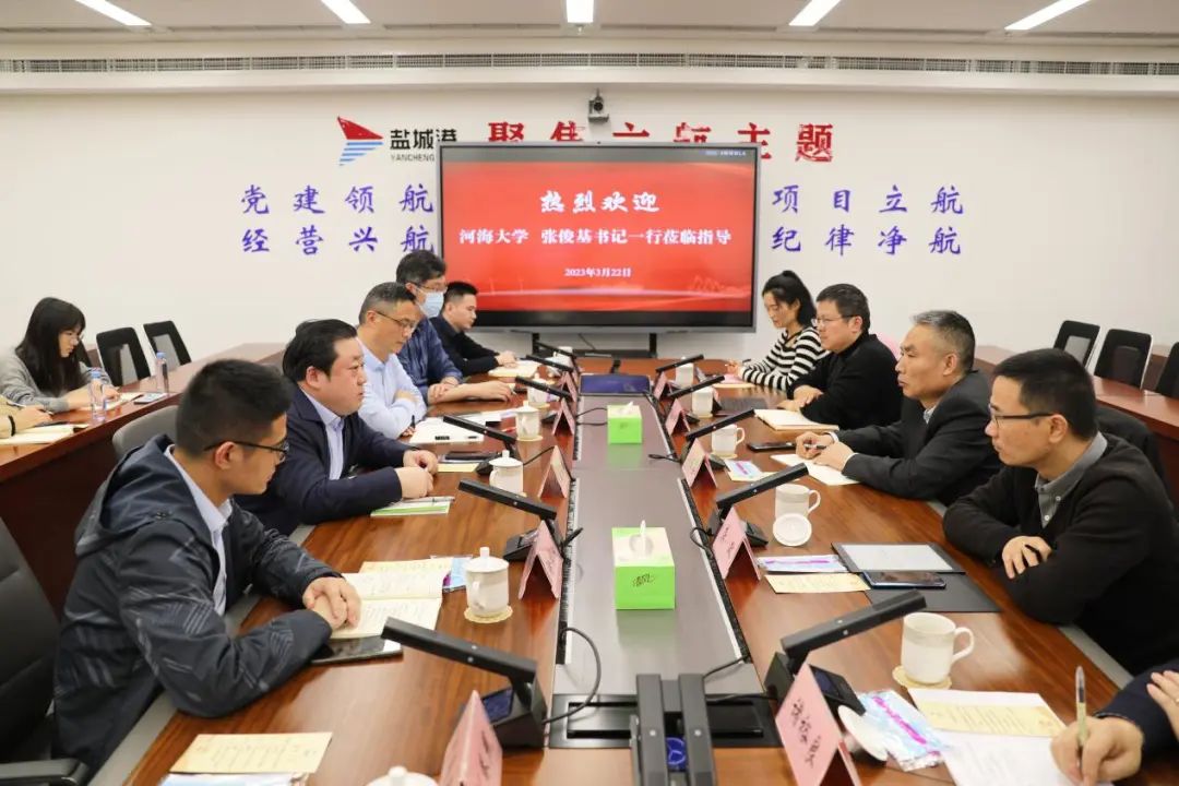 周正雄對張俊基一行的到訪表示歡迎,并對河海大學(xué)在鹽城港發(fā)展過程中給予的關(guān)心、關(guān)注和支持表示感謝,并介紹了鹽城港相關(guān)情況。他說,張俊基書記一行到訪,不僅是積極落實中央“大興調(diào)查研究之風(fēng)”的具體實踐,同時也為鹽城港實現(xiàn)更高質(zhì)量發(fā)展帶來了有力的理論支撐和智力支持。近年來,隨著江蘇沿海發(fā)展戰(zhàn)略上升為國家戰(zhàn)略,全省沿海基礎(chǔ)設(shè)施穩(wěn)步推進(jìn),立體交通初具雛形,為港口的發(fā)展打下了堅實基礎(chǔ)。港口作為沿海發(fā)展的重要增長極,市委、市政府審時度勢,將全市海港和內(nèi)河港區(qū)融為一體,組建成立鹽城港集團(tuán),對沿海、內(nèi)河岸線資源實行一體化運(yùn)營,充分利用各港區(qū)的區(qū)位和自然條件優(yōu)勢,形成海河聯(lián)運(yùn)一體化發(fā)展格局,進(jìn)一步實現(xiàn)港口資源使用效益的最大化。集團(tuán)成立以來,緊抓多重戰(zhàn)略疊加機(jī)遇,不斷整合優(yōu)化內(nèi)外部資源,全力以赴抓好生產(chǎn)經(jīng)營,在2021年首次躋身全國億噸大港行列,2022年位列全國40個億噸港口的第28位,貨物吞吐量增幅及集裝箱量增幅分別位列全國54個沿海港口的第一和第二位,進(jìn)一步打響了鹽城港品牌。