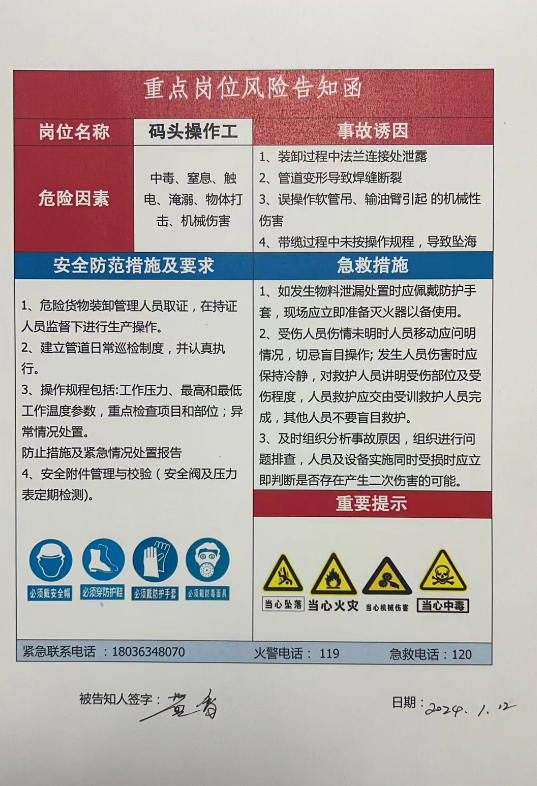 堅持實戰(zhàn)為要,全局性謀劃、整體性推進,不斷提升風險防范和應急管理能力。一是筑牢雙重預防體系。圍繞重點地段、重點崗位、重點人員,建立崗位提示函、告知卡,排查重點崗位從業(yè)人員628人(含場所租賃單位、勞務外包單位),辨識較大以上和重大風險源116處,制定管控措施3145條;二是持續(xù)推動安全標準化建設。按照安全生產8大要素,扎實推進管理制度化、常態(tài)化,截至目前,智慧港口公司、射陽港區(qū)、濱海港區(qū)、港儲石化、阜寧港區(qū)完成安全生產一級標準化驗收,響水港區(qū)、建湖港區(qū)、成品油公司完成安全生產二級標準化驗收,亭湖港區(qū)完成安全生產三級標準化驗收。三是強化應急處置能力。建立完善關鍵崗位輪崗備勤制度,確保關鍵崗位正常輪轉;結合應急處置的規(guī)律特點和效果評估,圍繞重點地段有針對性地開展現(xiàn)場處置演練,常態(tài)化督促各港區(qū)每月開展1次實戰(zhàn)演練,全面提升實戰(zhàn)能力。