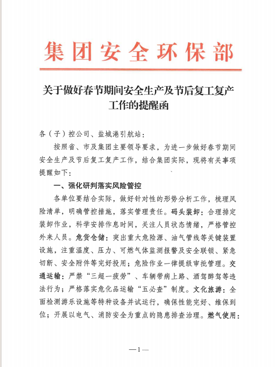 2024年是全面完成“十四五”規(guī)劃目標任務的關鍵之年,是集團打造“五新示范港”的突破之年,也是安全生產治本攻堅三年行動的開局之年。集團黨委高度重視安全生產、環(huán)境保護、平安建設工作,從行動上落實省、市決策部署,從源頭上消除事故隱患,全力以赴落實落細安全生產、環(huán)境保護、平安建設各項工作,持續(xù)夯實高質量發(fā)展根基。