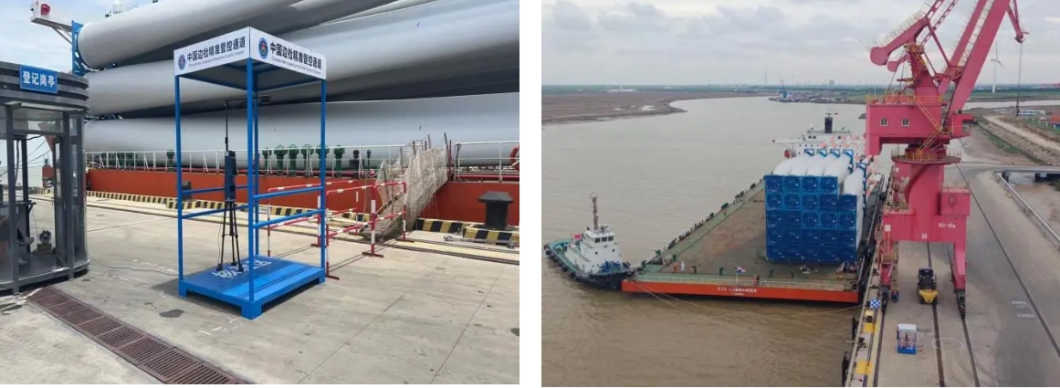 深化服務舉措,問題解決“快車道”。為最大限度壓縮船舶在港停泊時間,助力這批口岸“最多葉片”順暢通關,射陽港區提前對貨物大小、碼頭場地、運輸環境等綜合考量后,運用“邊運抵邊裝船”模式助力貨物高效出海?!霸凇呥\抵邊裝船’模式下,貨物進港后可直接開到碼頭前沿進行裝船,無需等待貨物全部集港完畢,經海關、邊檢實地驗核后即視為貨物運抵,緩解壓港、壓車情況,作業效率可以提升超30%?!鄙潢柛蹍^碼頭負責人表示。