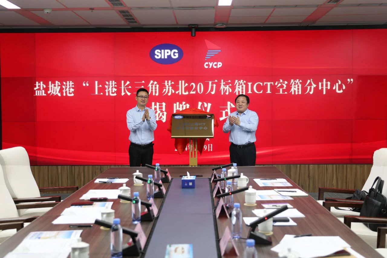 7月9日,鹽城港“上港長三角ICT蘇北空箱分中心”揭牌儀式成功舉行。集團黨委書記、董事長周正雄,上港集團長三角公司總經理陳偉出席活動并為中心揭牌。集團副總經理袁欣,上港集團長三角公司、航運集團相關負責同志及貨主企業代表等參加。