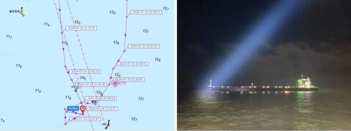 7月24日,伊朗籍貨船“阿凡達(dá)”輪(英文船名:ARTAVAND),船長224.97米、船寬32.25米,吃水12.90米,滿載61909.617噸硫磺,在航行至大豐港區(qū)航道43號浮附近受困,船舶被迫拋錨,隨時有擱淺風(fēng)險,情況危急。