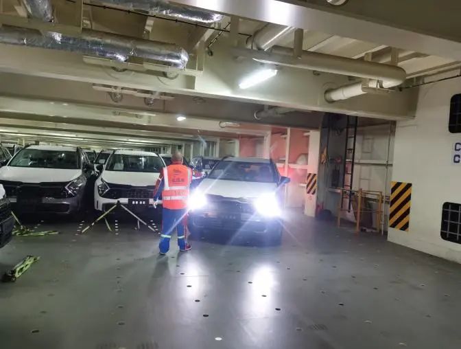 業(yè)務(wù)開展期間,工作人員密切配合,對每臺車輛進(jìn)行固定和檢查,熟練地進(jìn)行綁扎工作,確保車輛在運輸過程中不會發(fā)生絲毫移動,仔細(xì)查驗車輛的外觀和內(nèi)部設(shè)備,不放過任何一個可能存在的問題,同時安排專人專崗緊盯作業(yè)流程,嚴(yán)格把關(guān)汽車裝船及加固作業(yè),反復(fù)檢查每一個螺栓的緊固程度、每一根繩索的拉力大小,確保萬無一失,將高標(biāo)準(zhǔn)作業(yè)貫穿于卸車、驗車、收車、裝船、加固等各個環(huán)節(jié)。