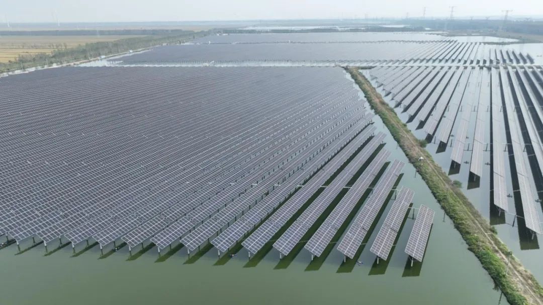 項目總投資15.8億元,是江蘇省能源類重點工程和鹽城市重點工程項目,由鹽城港集團與悅達集團共同投資,采用“一地兩用、漁光互補”模式,最大化綜合利用陽光、水體等資源,打造了“上可發(fā)電、下可養(yǎng)魚”的集光伏發(fā)電、現(xiàn)代高效漁業(yè)養(yǎng)殖于一體的示范項目。