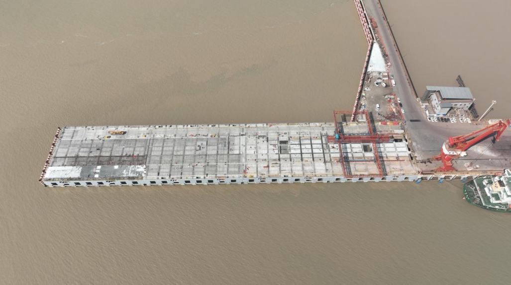 隨著最后一榀預制面板在智能筑港機的精準操控下平穩就位,鹽城港大豐港區三期通用碼頭3號泊位項目圓滿完成全部預制構件安裝任務。這一重要節點不僅標志著碼頭主體工程建設進入最后沖刺階段,更意味著由項目建設、設計、施工等參建各方聯合中國海洋大學,依托國家重點研發計劃開展的核心技術攻關,為該項目量身打造的“智能積木拼裝師”——全球首創裝配式碼頭一體化綠色智能筑港機成功完成示范應用。
