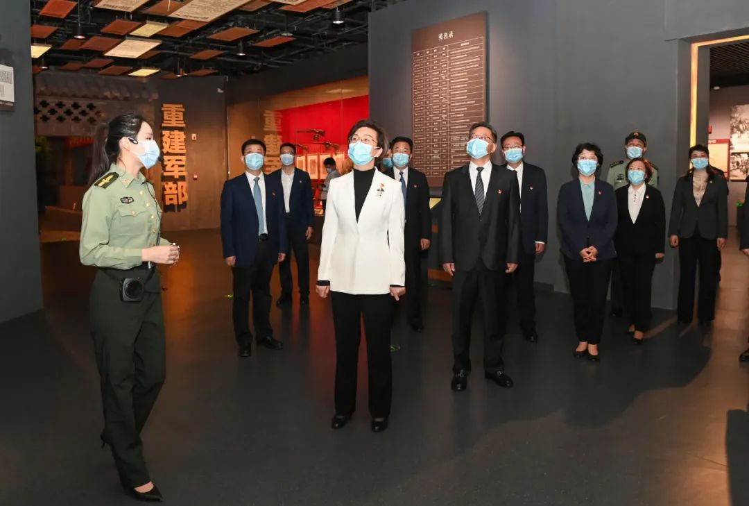 走進新四軍紀念館,徐纓帶領(lǐng)大家參觀“鐵軍忠魂”主題展覽,認真聽取講解介紹,不時詢問有關(guān)情況,通過一幅幅珍貴圖片、一件件歷史文物、一個個戰(zhàn)斗場景,現(xiàn)場接受革命傳統(tǒng)教育,體悟中國共產(chǎn)黨創(chuàng)業(yè)之坎坷、奮斗之艱辛。在“宋公碑”前,徐纓駐足凝視,聽取蘇北沿海民心長城“宋公堤”的修建經(jīng)過介紹,感悟老百姓“每聞潮聲思宋公”的深情,重溫中國共產(chǎn)黨全心全意為人民服務辦實事的光輝歷史。