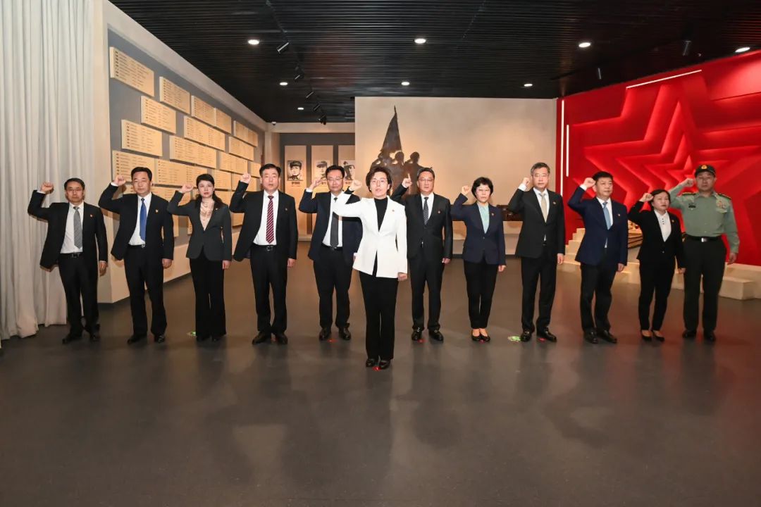 在傳承廳里,懸掛著鮮紅的中國共產(chǎn)黨黨旗。徐纓帶領(lǐng)大家面對黨旗舉起右拳鄭重宣誓,鏗鏘誓言響徹大廳。隨后徐纓滿懷深情地說: