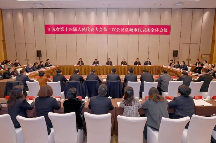 出席省十四屆人大二次會議的鹽城市代表團在寧召開全體會議