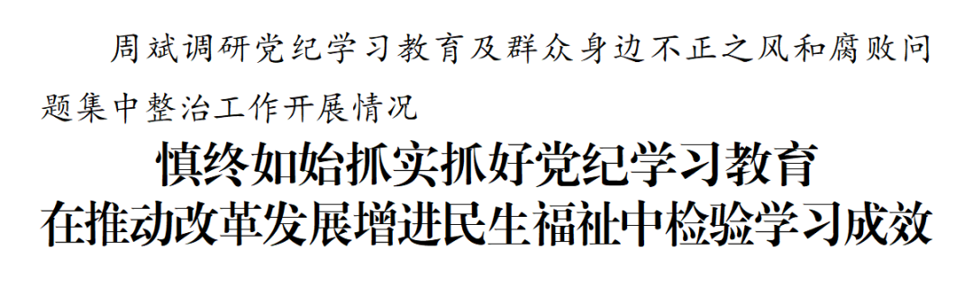 周斌調研黨紀學習教育及群眾身邊不正之風和腐敗問題集中整治工作開展情況