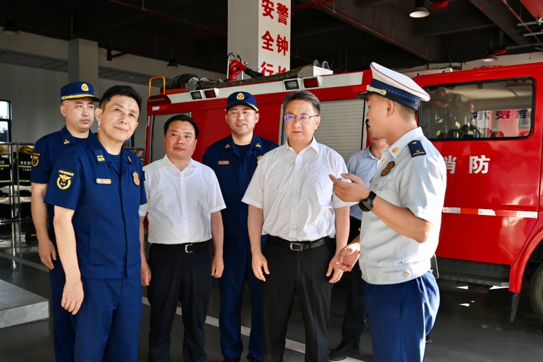 安全是發展的前提。周斌來到響水縣氣象預警中心,察看中心運行情況,聽取相關工作介紹,強調要用好“一中心三張網”氣象災害防御機制,堅持“氣象+”賦能,不斷提升氣象服務保障能力。烈日炎炎,灌江路政府專職消防救援隊的消防員們仍在堅守救援和訓練崗位。周斌向大家致以誠摯慰問,要求強化防的責任,提升救的能力,練就“看家本領”,切實保障人民群眾生命財產安全。在響水愛琴海購物中心,周斌深入商鋪、餐飲等場所,隨機檢查消防控制室值班值守、消防安全設施設備運行情況,要求嚴格落實各方責任,完善應急預案,暢通“生命通道”,做好應急培訓,提升消防安全保障能力。