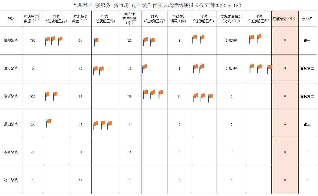 2.濱海港區戰隊:在拜訪活動中,濱海港區戰隊不僅僅局限于規上企業名單,拜訪的同時也不忘挖掘周邊有可能的企業。通過這種做法也是成功發掘一家化肥貿易企業,吞吐量50萬噸,正在商討合同條款,預計下周簽訂合同并開始走量。