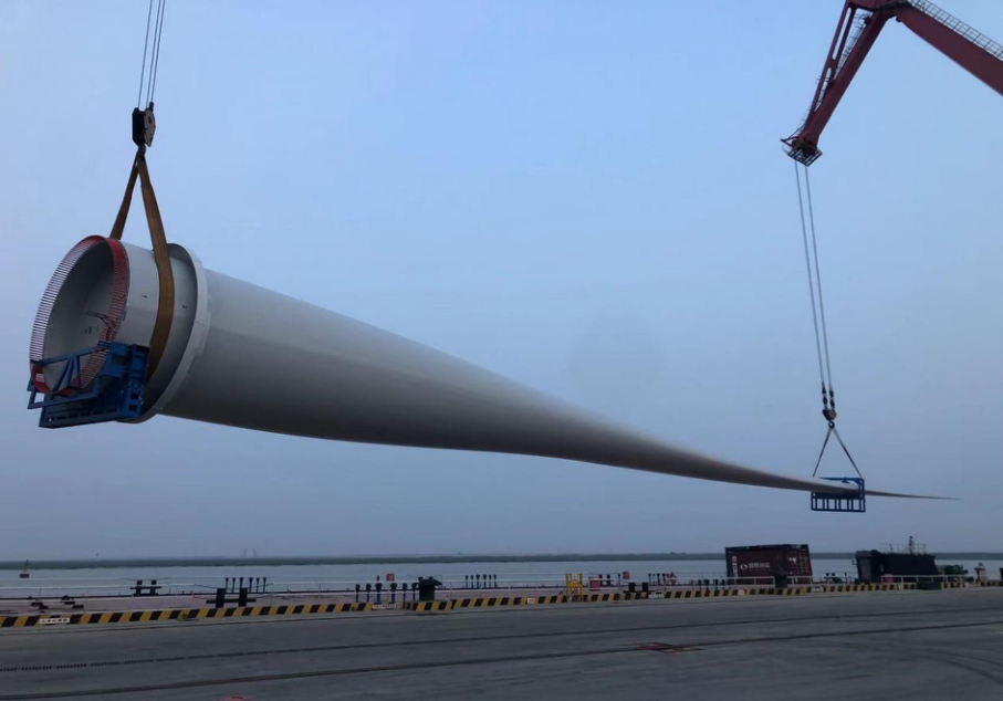 6月16日,射陽港區(qū)順利完成了首船107米風(fēng)電葉片的裝卸作業(yè)工作,這是中國近海岸風(fēng)力發(fā)電場第一套107米發(fā)電機(jī)組葉片,也是射陽港區(qū)有史以來裝卸作業(yè)的最長風(fēng)電葉片,再次刷新了射陽港區(qū)風(fēng)電葉片吊裝紀(jì)錄,標(biāo)志著射陽港區(qū)成功躋身百米以上級風(fēng)電葉片發(fā)運(yùn)港口行列。這次成功裝卸,創(chuàng)造了鹽城港裝卸風(fēng)電葉片長度新紀(jì)錄,向鹽城港集團(tuán)成立兩周年獻(xiàn)上了一份厚禮。