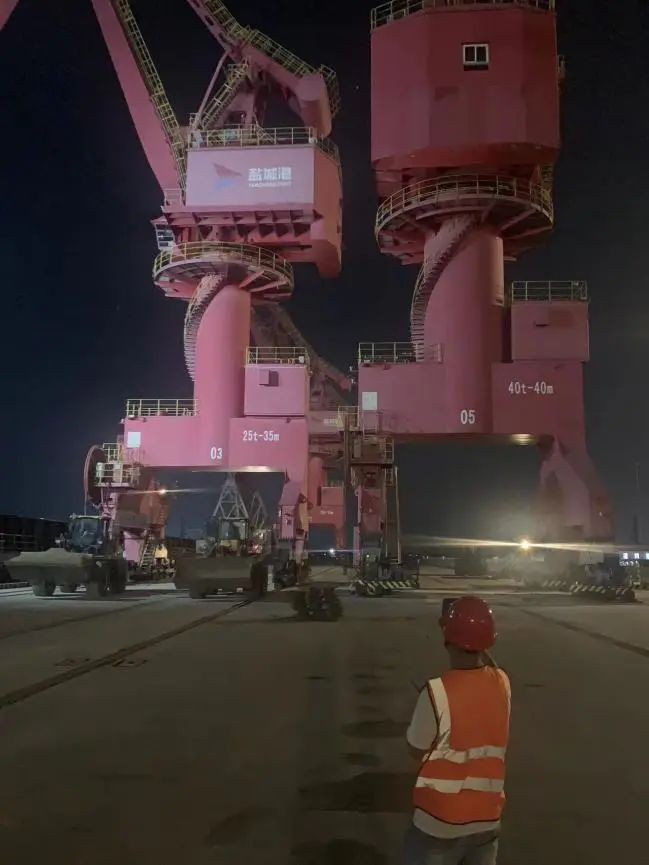 “5#門機入軌正常”“行走機構壓輪正常”“回轉、起升、變幅機構運行正常”隨著現場指揮員對講機里傳來各機構一切正常運行的報告,經過10個晝夜的連續奮戰,鹽城港射陽港區碼頭門機移位作業宣告完美收官。