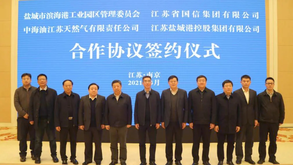 3月2日,濱海港工業園區、省國信集團、中海油江蘇天然氣公司、鹽城港集團在南京簽訂四方合作協議。市委常委、濱??h委書記、濱海港工業園區黨委書記孫軼出席簽約儀式。集團黨委書記、董事長、總經理周正雄與三家合作單位相關負責同志共同簽訂《合作協議》。