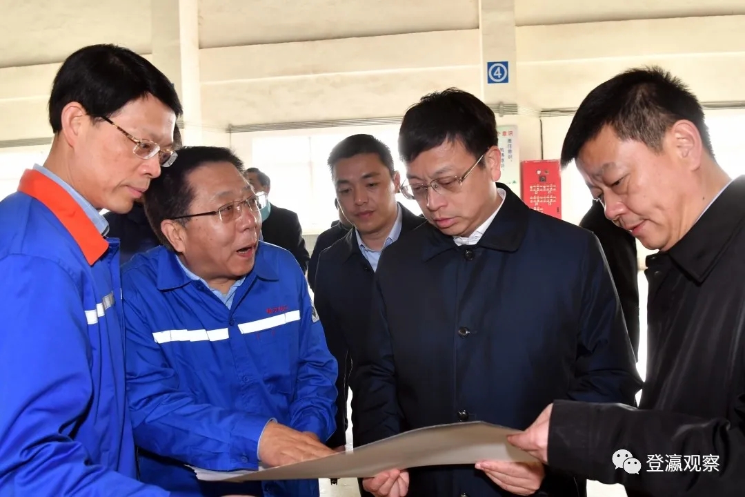 ▲市長(zhǎng)曹路寶察看正大豐海原料藥項(xiàng)目