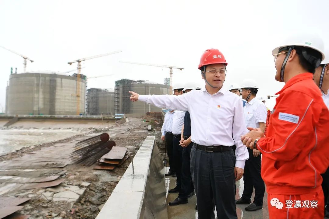 ▲曹路寶察看中海油濱海港LNG項目現(xiàn)場