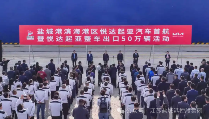 11月15日上午,悅達(dá)起亞整車出口第50萬輛裝船起航儀式在鹽城港濱海港區(qū)舉行,這也是悅達(dá)起亞汽車自大豐港區(qū)出口以來開通的新出海航線。市長(zhǎng)嚴(yán)漢平出席儀式并宣布起航。