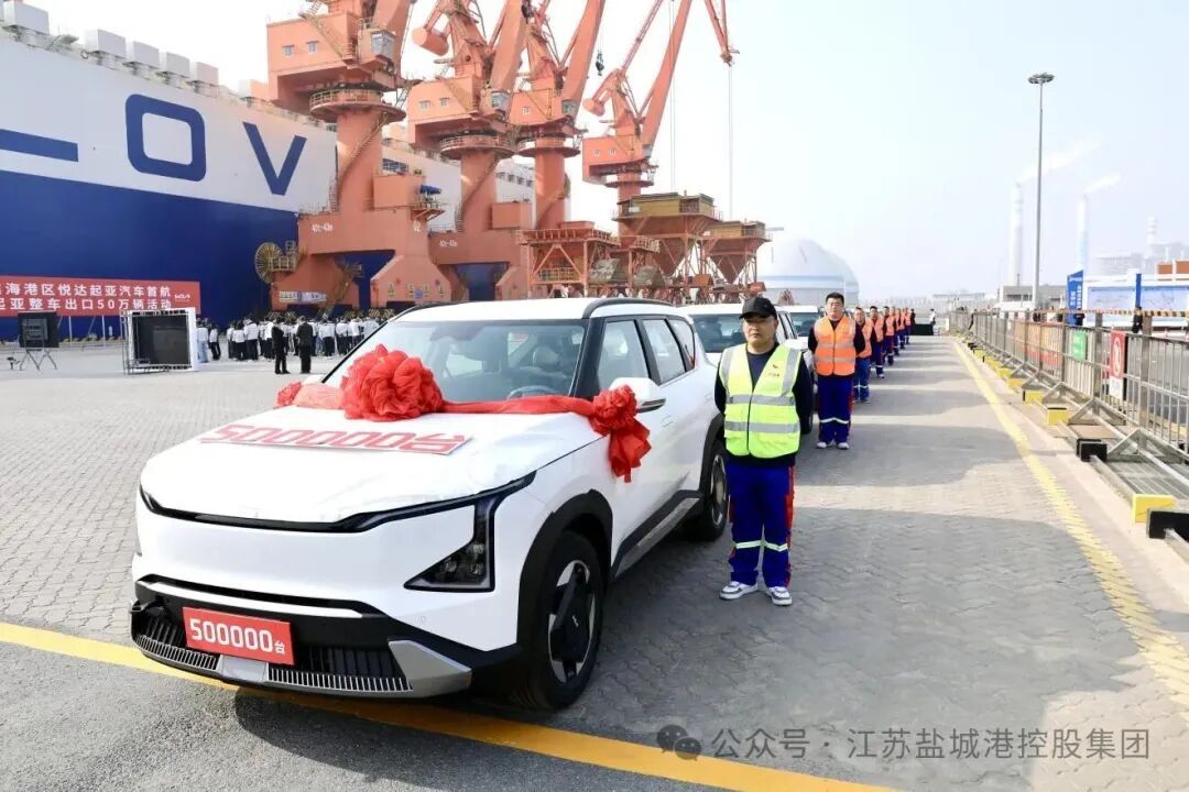 11月15日,在鹽城港濱海港區滾裝碼頭,隨著2000輛悅達起亞整車平穩駛入滾裝船,該品牌在中國整車出口正式突破50萬輛大關,鹽城汽車出口業務邁上全新臺階。