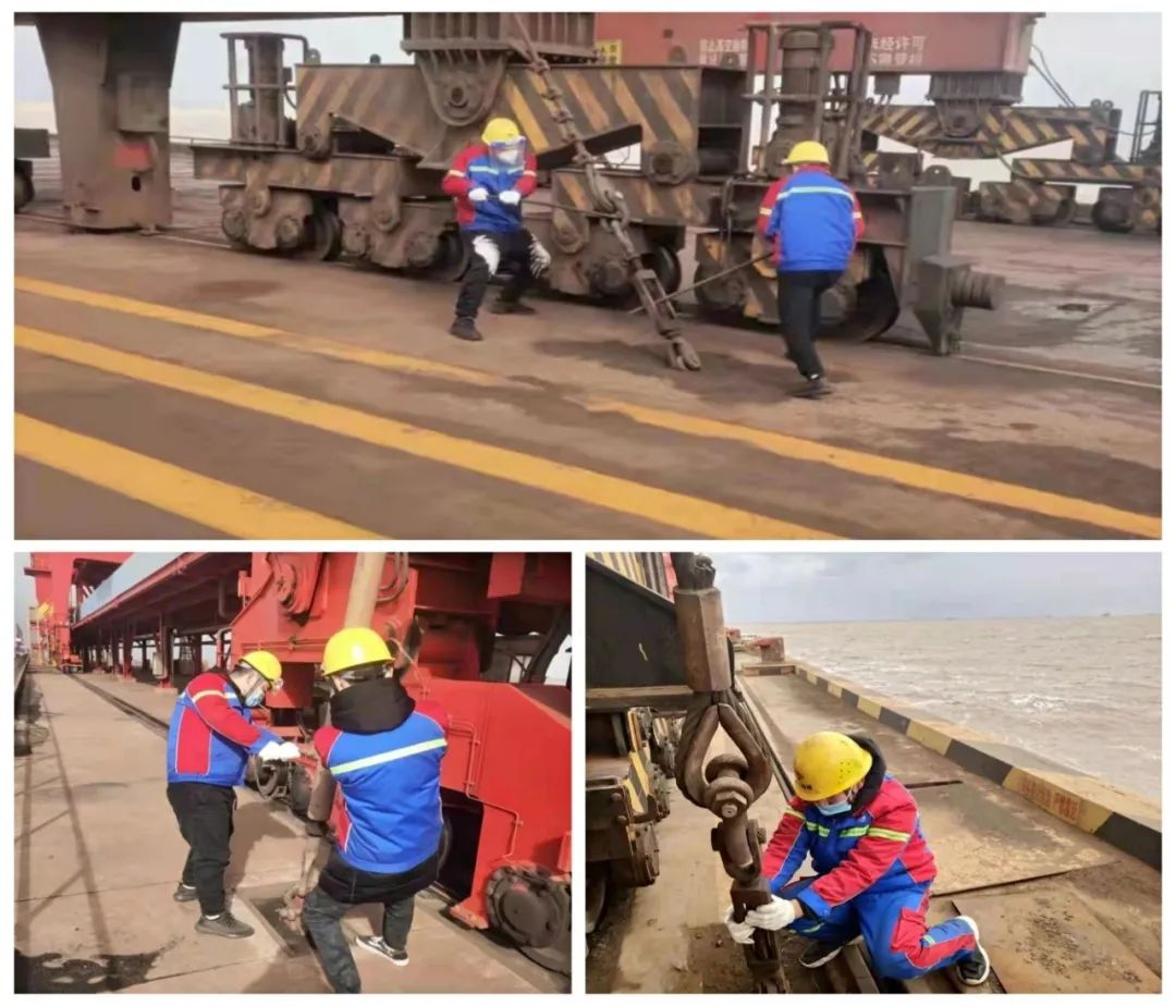 不畏嚴(yán)寒,斗風(fēng)戰(zhàn)雪。各分(子)公司和部門結(jié)合生產(chǎn)作業(yè)特點(diǎn),針對(duì)性地布置了應(yīng)對(duì)極端天氣的工作措施。后勤人員給水管閥門和水表包扎棉布、填充棉衣,避免管道凍裂;機(jī)修人員實(shí)時(shí)檢測(cè)碼頭風(fēng)力,對(duì)大型港機(jī)設(shè)備進(jìn)行加固錨定;機(jī)務(wù)人員根據(jù)氣溫變化,提前儲(chǔ)備了抗凝劑、啟動(dòng)液、-10號(hào)和-20號(hào)柴油,同時(shí)重點(diǎn)開展各類機(jī)械的燃油料、防凍液、油水管路防凍檢查工作,為設(shè)備在冰凍天氣下安全運(yùn)轉(zhuǎn)提供堅(jiān)實(shí)屏障。