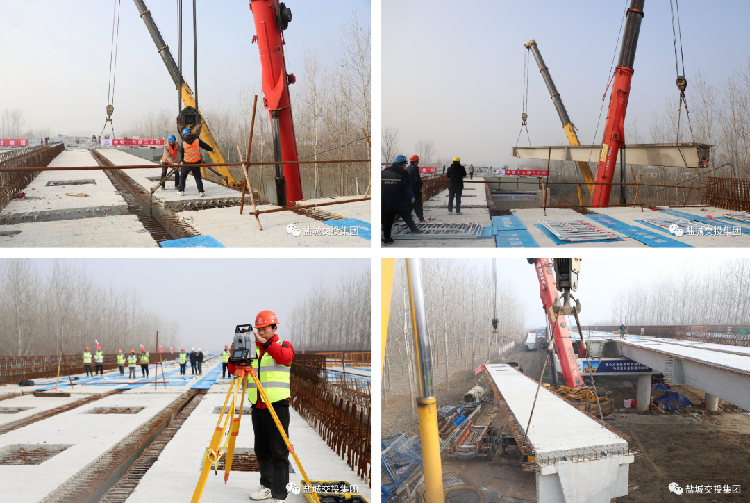 此次貫通的廢黃河大橋全長646米,跨越黃河故道生態管控區,為全線控制性工程。為最大程度減少施工對周邊生態環境的影響,項目管理團隊積極踐行綠色發展理念,以(37+55+37)米鋼箱梁的方式跨越黃河故道,并采用裝配式預制箱梁“搭積木”的方式建造大橋的引橋部分,架設裝配式箱梁共136片。